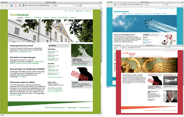 The National Swedish Museum of Military History is in charge of both The Swedish Army Museum in Stockholm as well as the Swedish Air Force Museum in Linköping. The mission was to develop new visual identities for the authority, and both museums. The websites were produced in cooperation with Mogul. The design was developed together with Jonas WE Andersson.